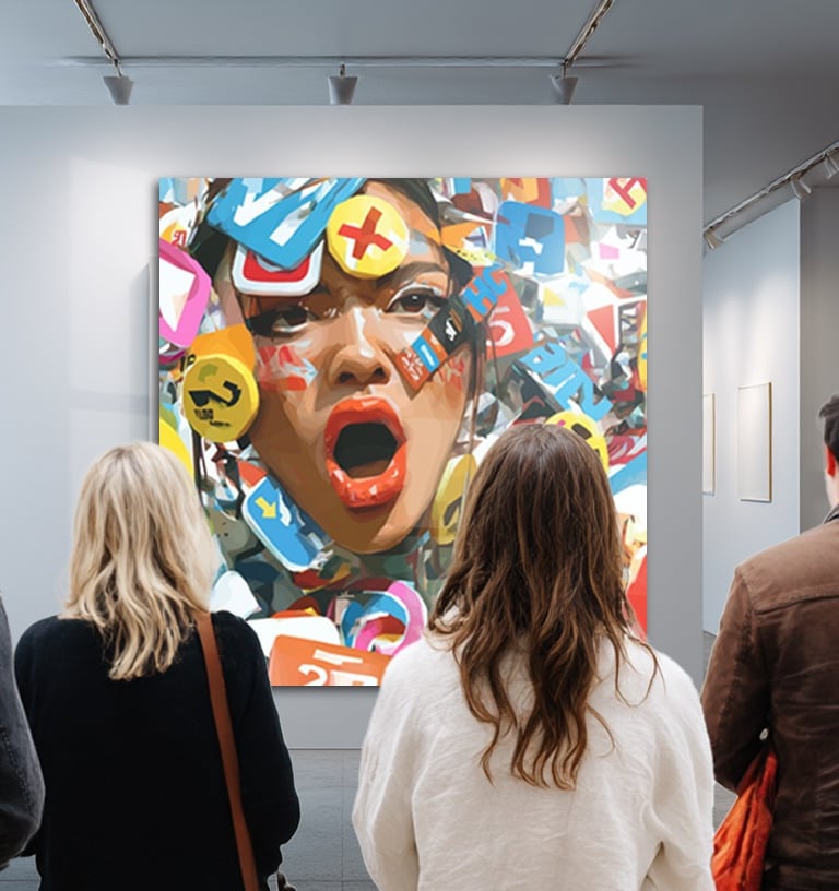 La série Dark Side of Social Media explore l’envers du décor des réseaux sociaux : un espace saturé de signes, de logos et de flux continus qui sollicitent en permanence l’attention.