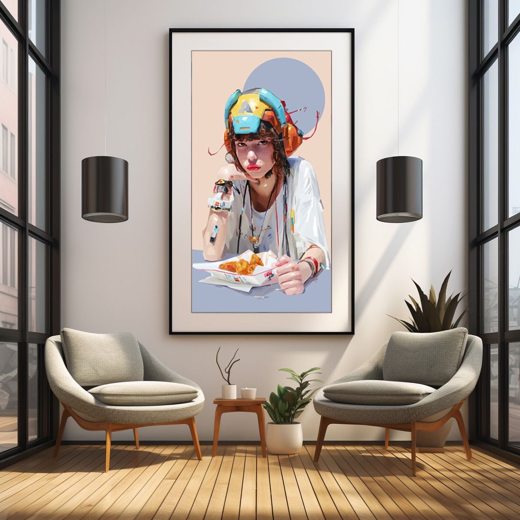 La série Psyconsomatik met en scène de jeunes femmes absorbées dans un double acte de consommation : celle des produits courants et celle, plus invisible, des flux numériques.